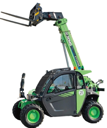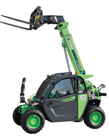 Model XT2506E oferuje wysoki komfort i bezpieczeństwo operatora – kabina z certyfikacją FOPS/ROPS, klimatyzacja, siedzenie pneumatyczne, kamera cofania oraz system antyprzechyłowy. Precyzyjne sterowanie zapewnia proporcjonalny joystick oraz nowoczesne wyświetlacze (8” + 4,3”). Napęd elektryczny 4×4 i pełne lane koła gwarantują stabilność i doskonałą trakcję w każdych warunkach.
